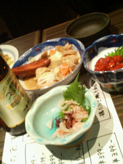 写真奥からモヘ煮込みクン、手前酒盗サン、向かって右手チャンジャ